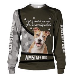 American Staffordshire Terrier All I Need Is My Dog It’s Too Peopley Outside 3D Hoodie, Shirts, Jacket S-6XL